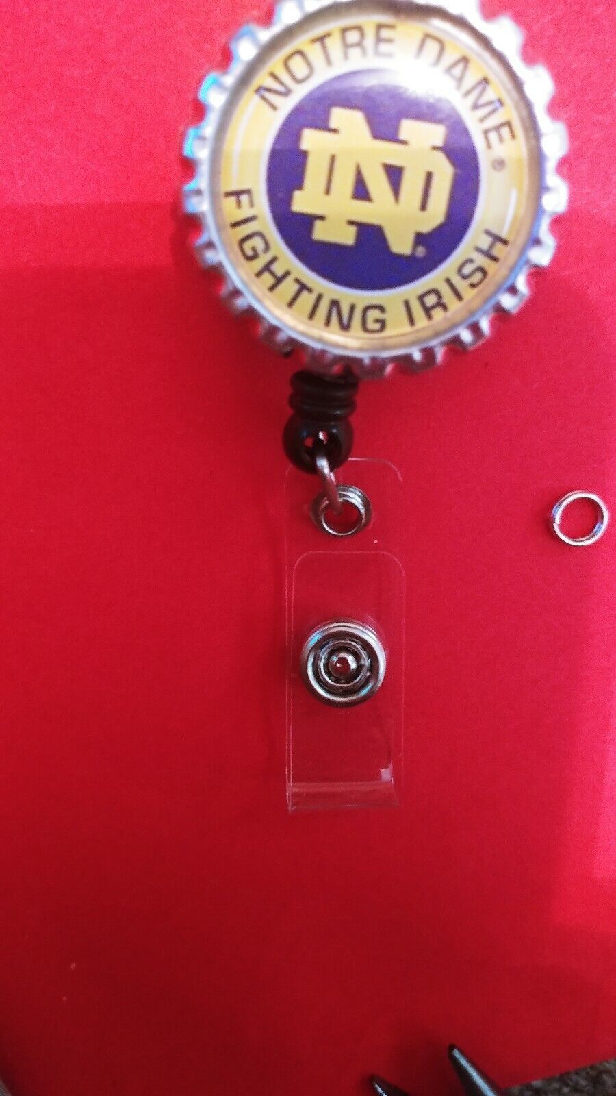 - Notre Dame fighting Irish work Retractable Reel ID Badge Holder nurse Dr cna