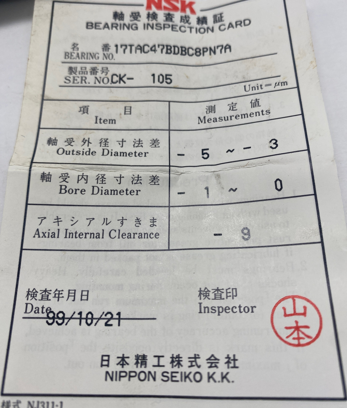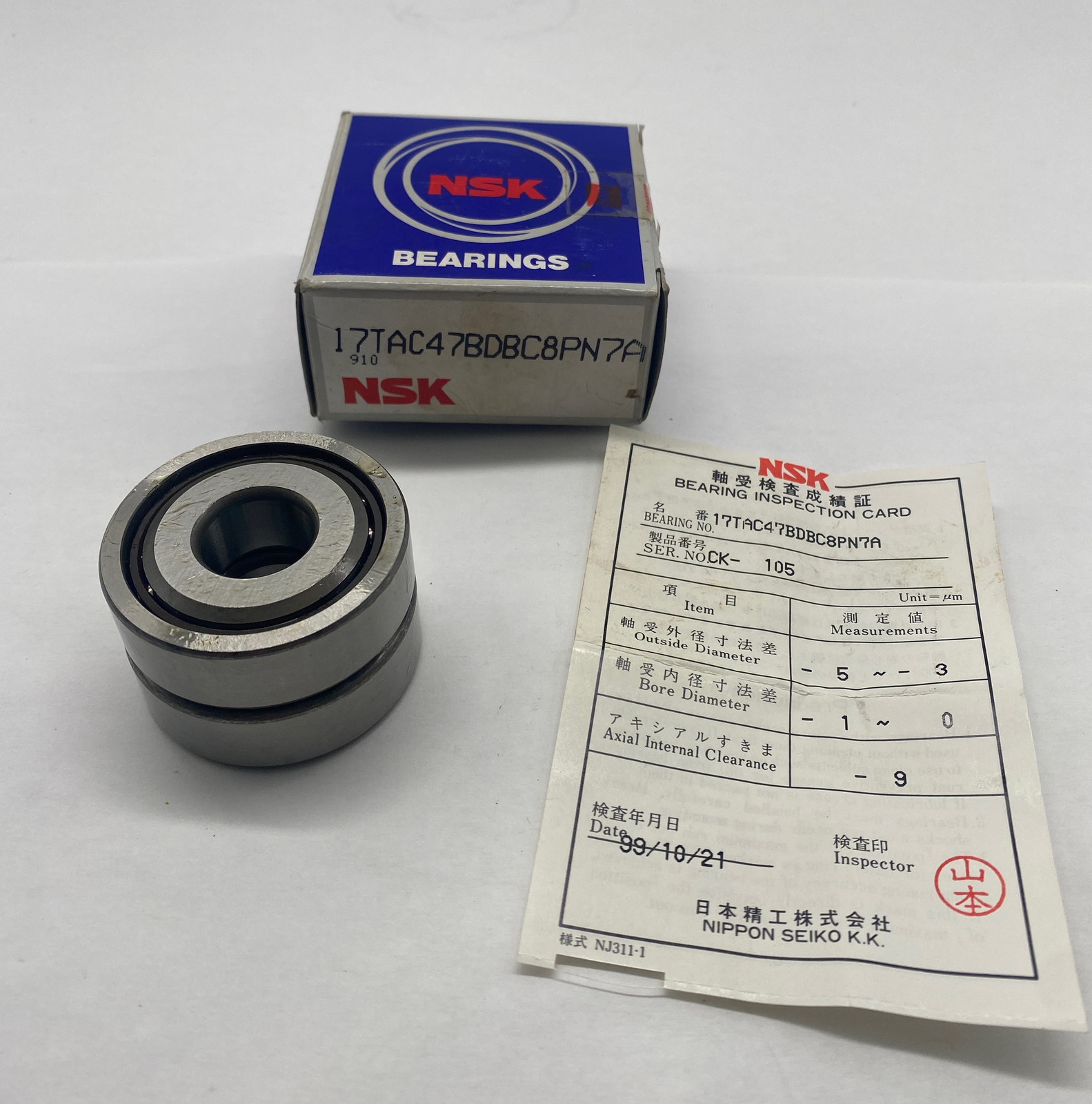 - NSK 17TAC47BDBC8PN7A Ball Bearing 1" Bore Diameter, Set of Two