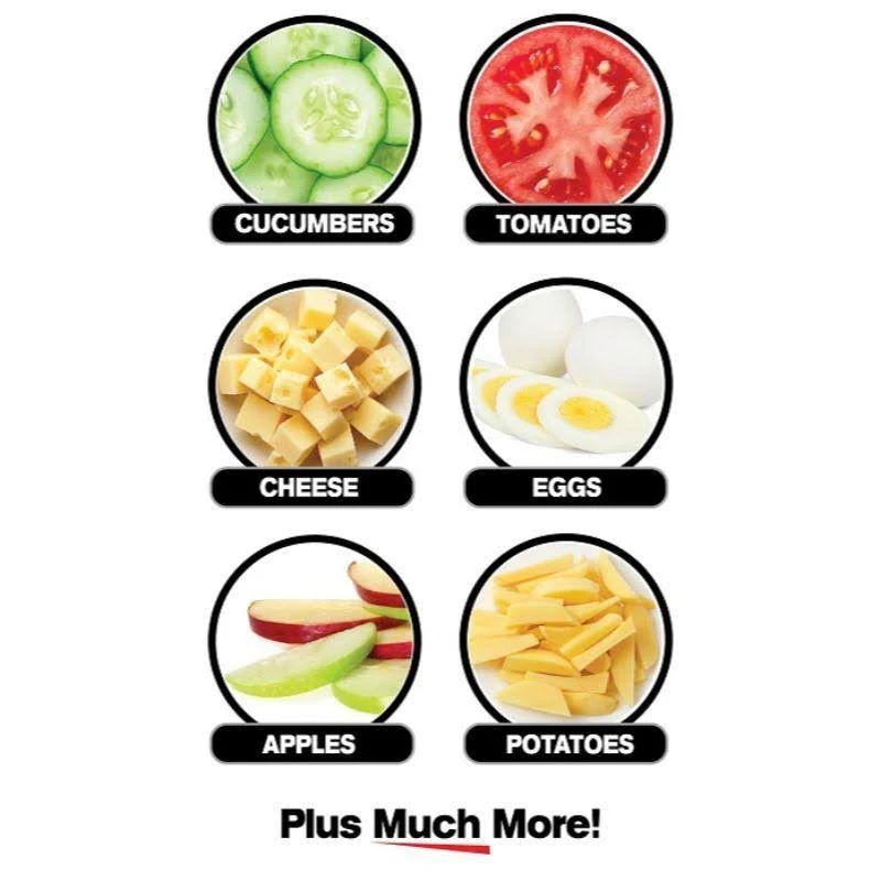 Five different interchangeable slicing options into one slicer ~ so now you can chop thick slices ~ thin slices ~ cubes and more