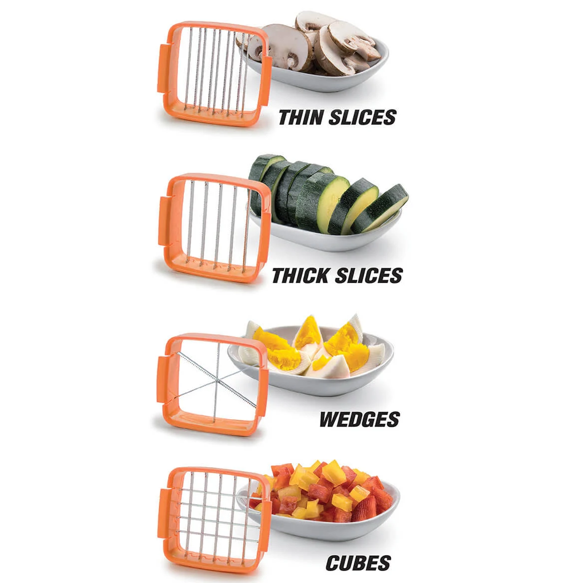 Compact ~ handheld kitchen gadget is a slicer that cuts your vegetables with just one snap