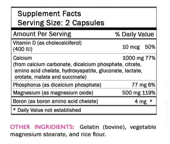 Boron, Calcium, Magnesium, Phosphorus, Vitamin D3 (Cholecalciferol) |