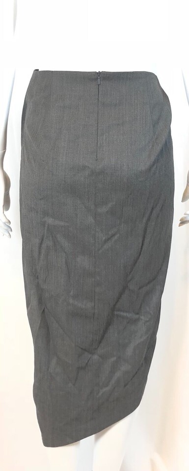 This is a great Helmut Lang skirt. This RARE SAMPLE skirt was never produced. Features a twisted pleated front with draped slit and flat zip closure back. Gray twill like material (feel like cotton/wool blend maybe). No size or fabric/care tags because it is a sample. All of Helmut's samples are sz 2 (small).