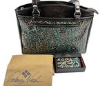 NWT Patricia Nash TOOLED TURQUOISE POPPY LEATHER TOTE WITH ZIP AROUND WALLET