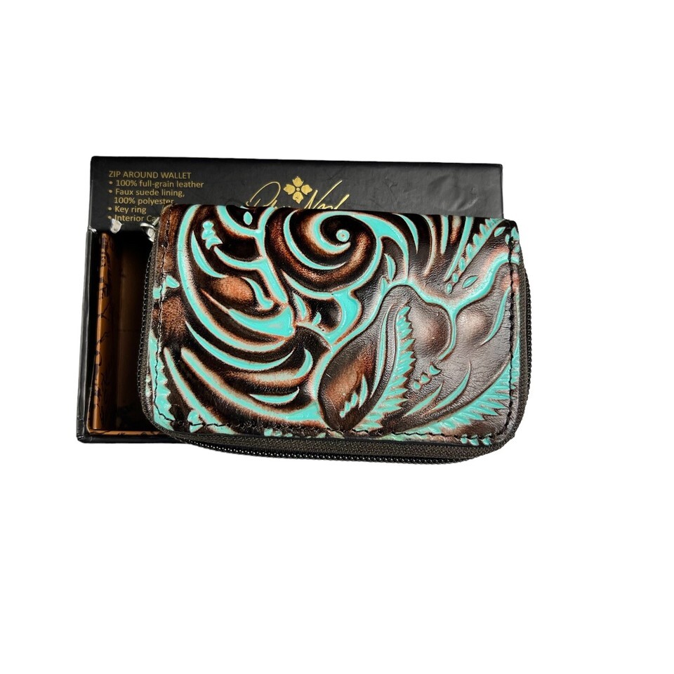 - NWT Patricia Nash TOOLED TURQUOISE POPPY LEATHER TOTE WITH ZIP AROUND WALLET