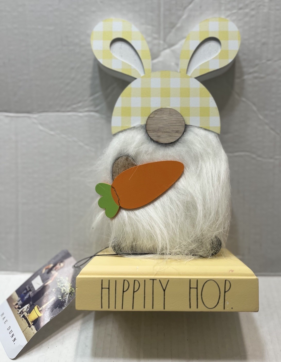 - NWT RAE DUNN FARMHOUSE Hippity Hop GNOME WOOD TABLETOP SIGN DECOR Easter-READ