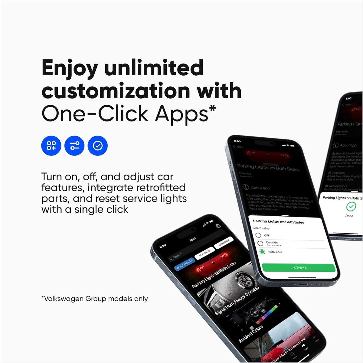 The safest choice on the market: OBDeleven NextGen is a Bluetooth car diagnostic and customization tool officially licensed by leading car brands like Volkswagen Group (VAG), BMW Group, and Toyota Group.