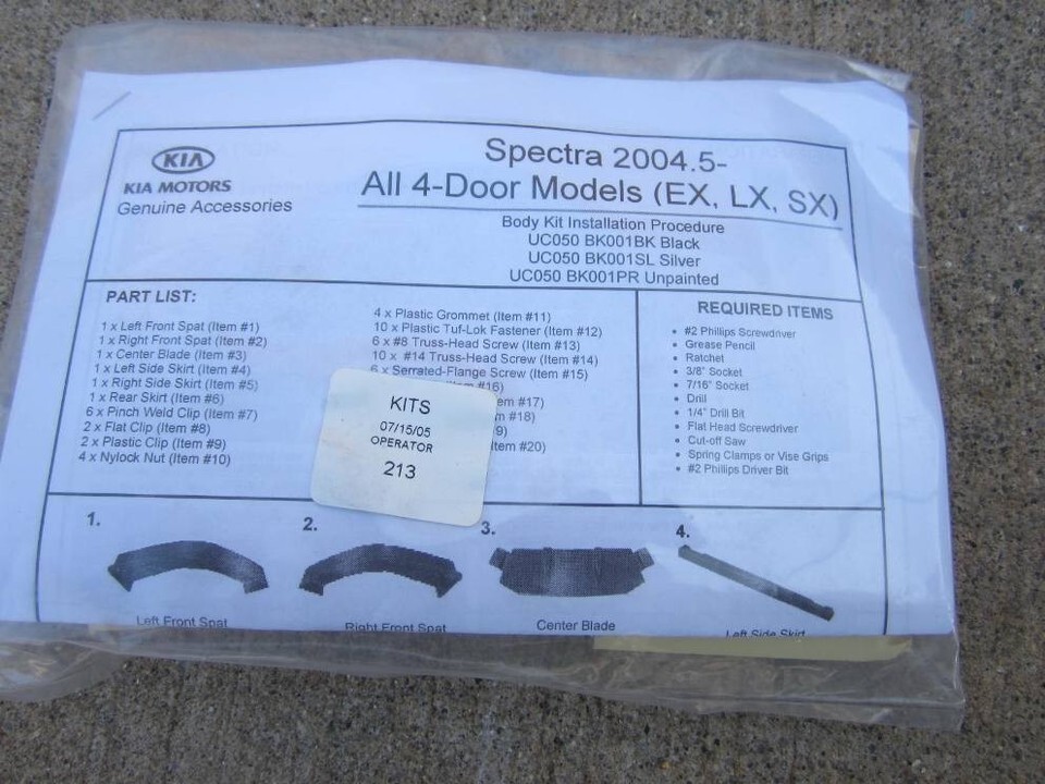 This is a new, genuine OEM Kia body kit for 2005-2006 Spectra.
