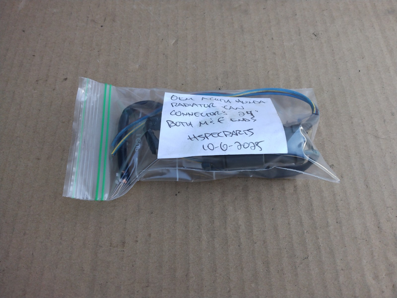 GOOD USED CONDITION. 24" TOTAL LENGTH. MALE AND FEMALE RADIATOR COOLING FAN CONNECTORS. OEM PARTS. FITS MOST 92+ HONDA AND ACURA COOLING FANS. FROM A 2001 CRV. SHIPS USPS WITHIN A BUSINESS DAY OF PAYMENT.