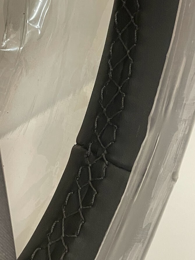 Jet black leather with gray stitching