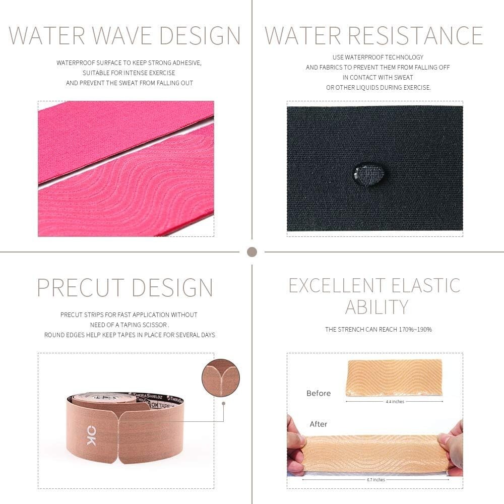 LONG-LASTING ? Professional acrylic glue in our unique water wave design provides excellent adhesion and breathability. OK TAPE is also water-resistant, so you can work out and sweat with no worries.