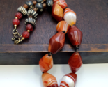 - OLd Himalaya Tibetisch Rot Achat Karneol Perlen Unikat Muster Halskette