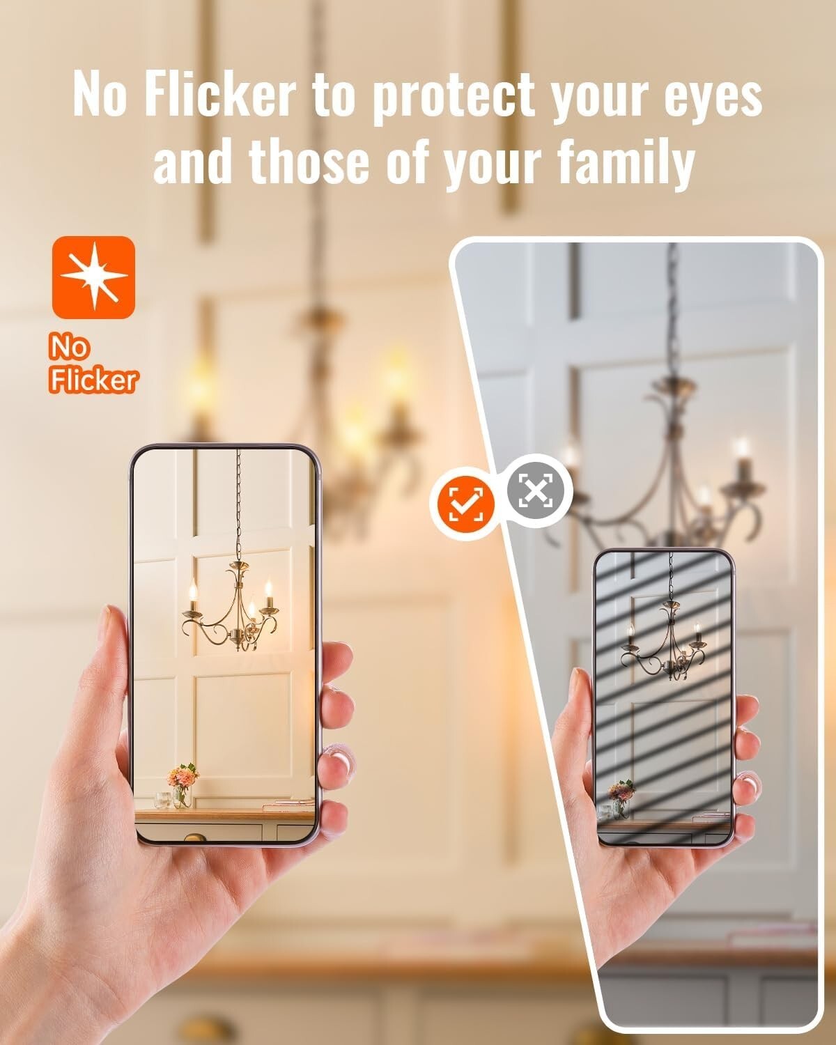 [Fully Dimmable] These dimmable 100W equivalent LED bulbs can be smoothly adjusted to different brightness levels from 10% to 100%, compatible with 90% of dimmers on the market, and will not flicker, so you can easily adjust the brightness to suit any occasion and meet your different needs. Note: Dimmer not included
