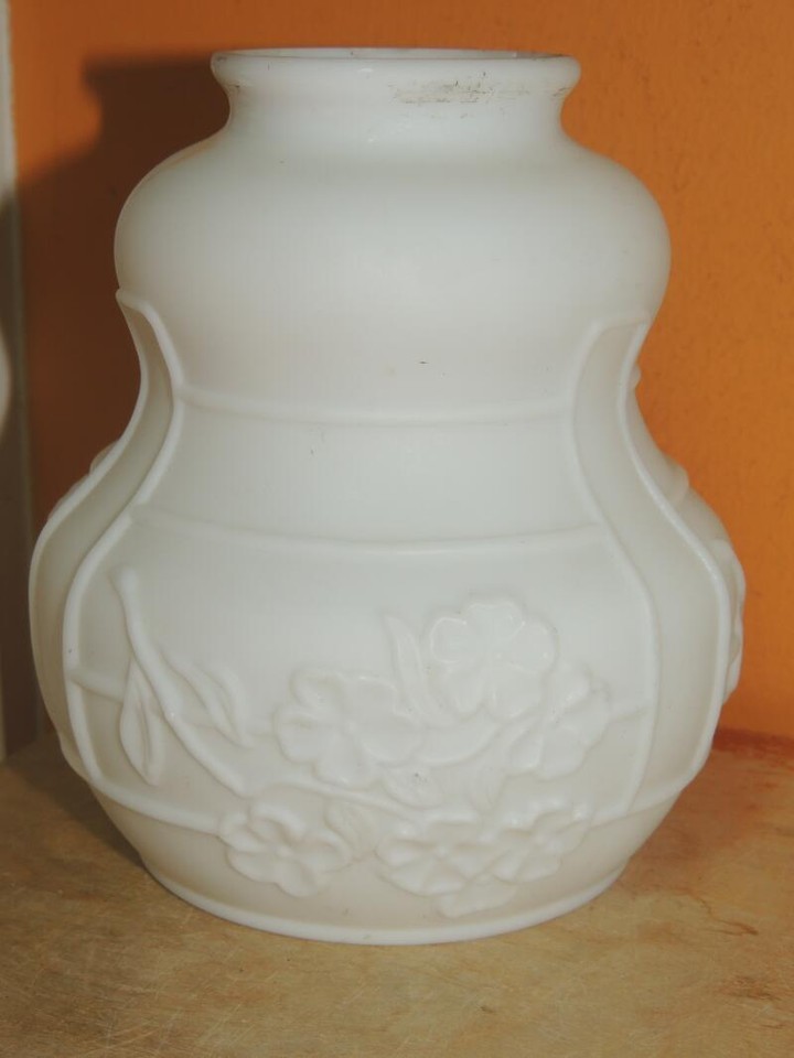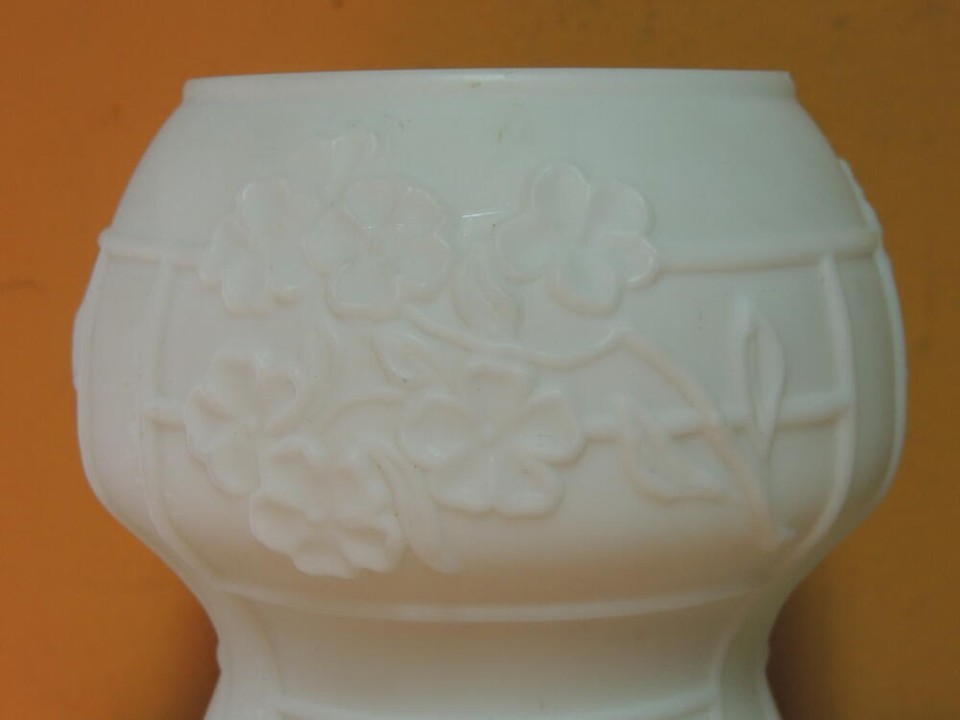 - ONE Antique Milk Glass Lamp Shade 2.25 fitter Dogwood Embossed Chinoiserie