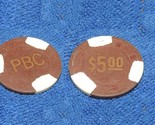 - ONE Clay $5 Poker Chips Pacific Beach Card Room Club Gambling San Diego Vintage