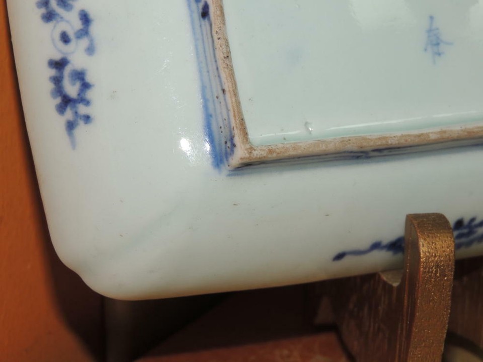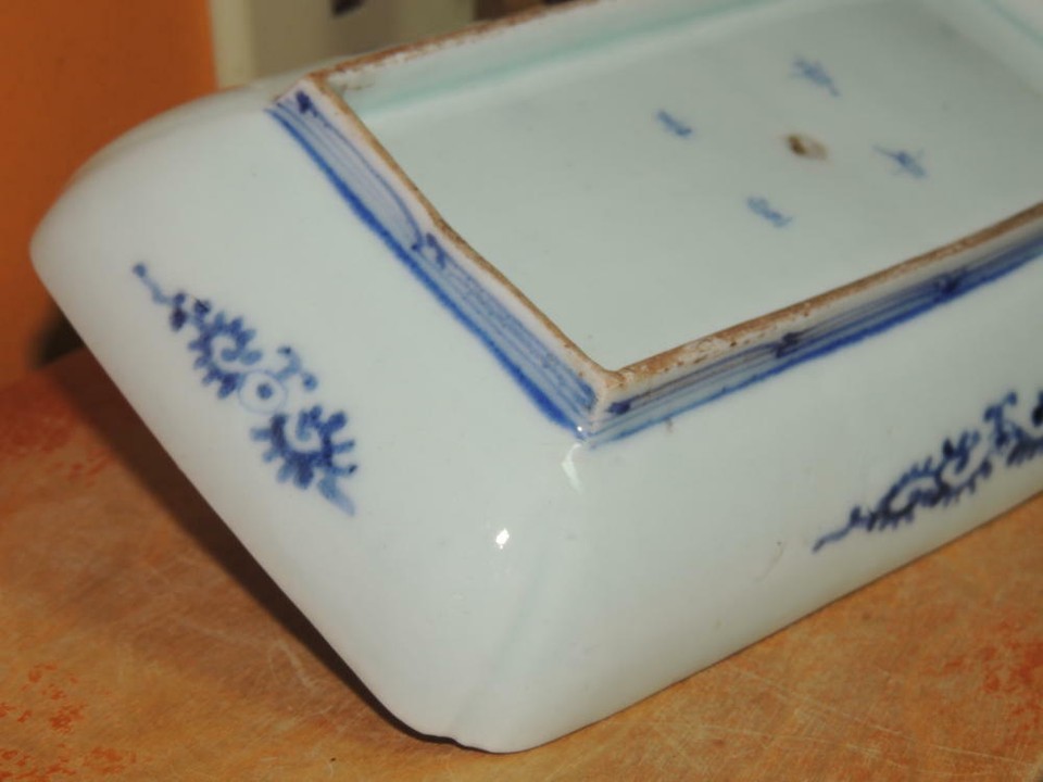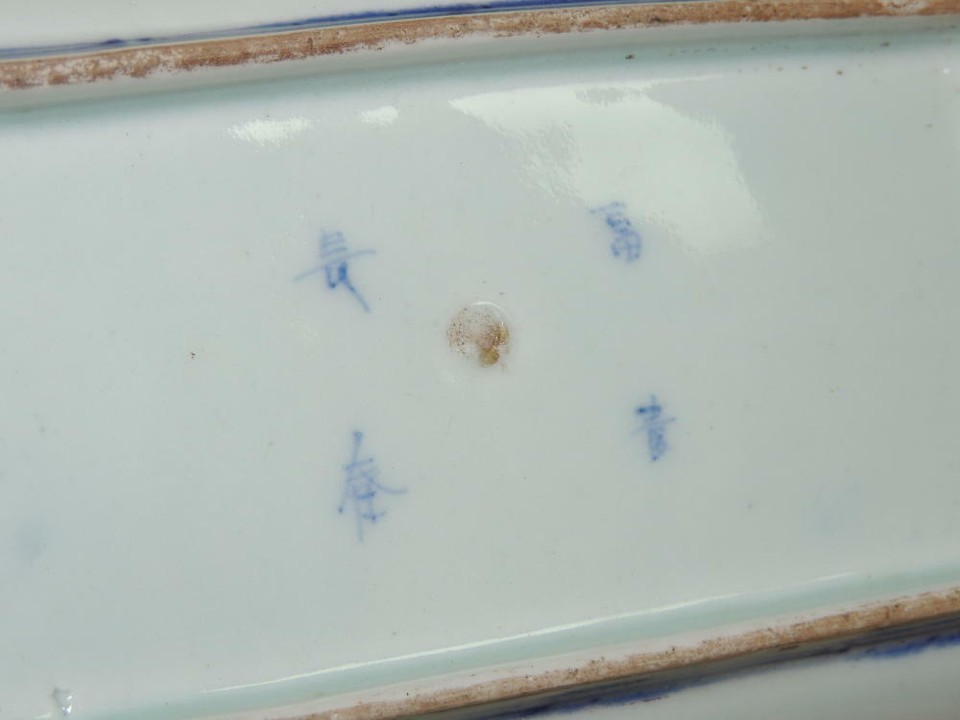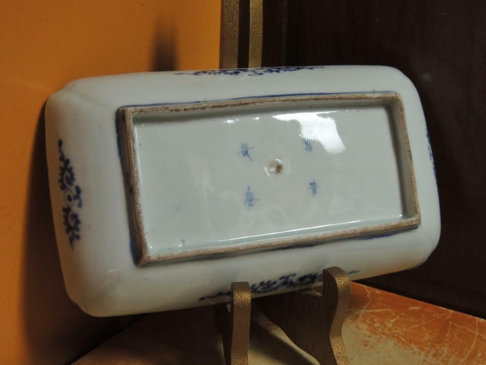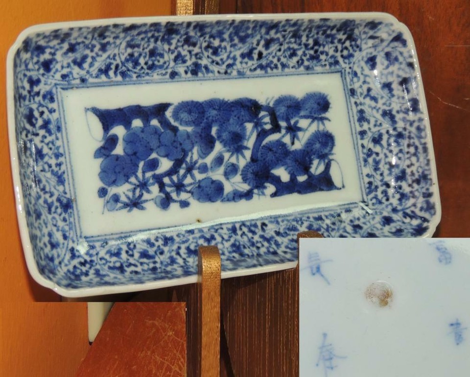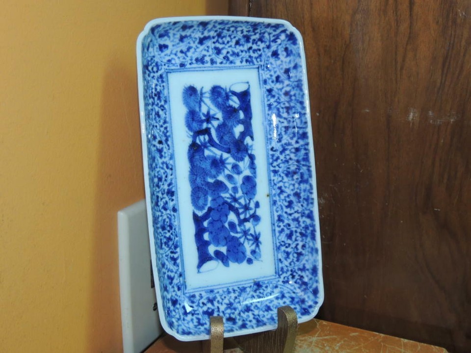 ONE Japanese Dish/ Tray 8.5"x4.75 Blue White Arita Meiji 19th pos Fuki Choshun 3
