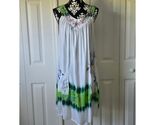 ONE SIZE Island Planet White Green Tie Dye Embroidered Sleeveless Beach Dress
