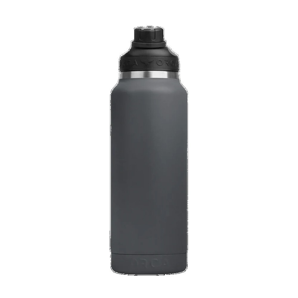 Stay hydrated in clean, classic style with the ORCA Hydra 34 oz insulated stainless steel bottle in Charcoal Gray . Built tough with double-wall vacuum insulation, it keeps drinks cold or hot for extended periods while preventing condensation on the outside.