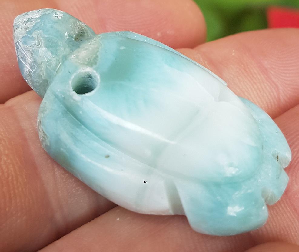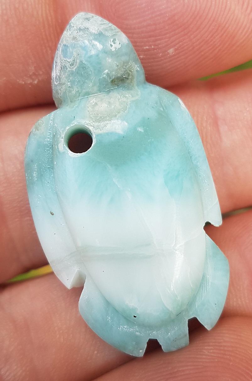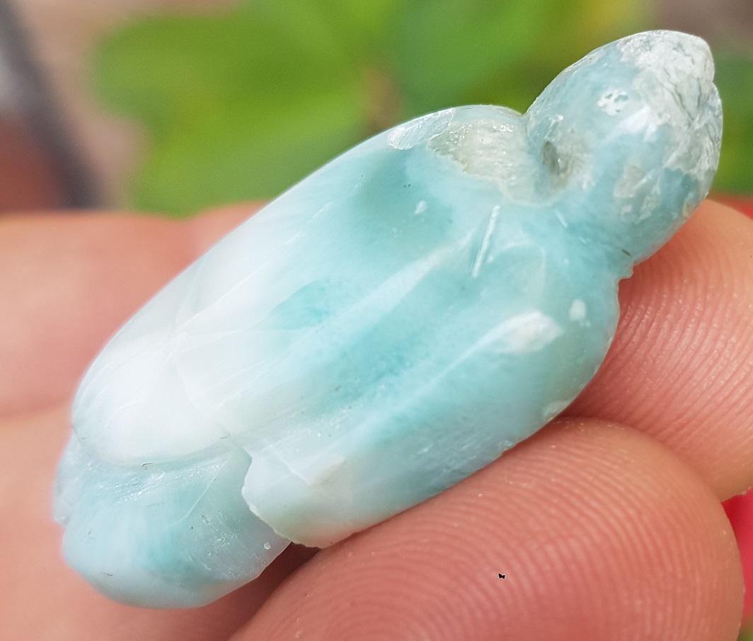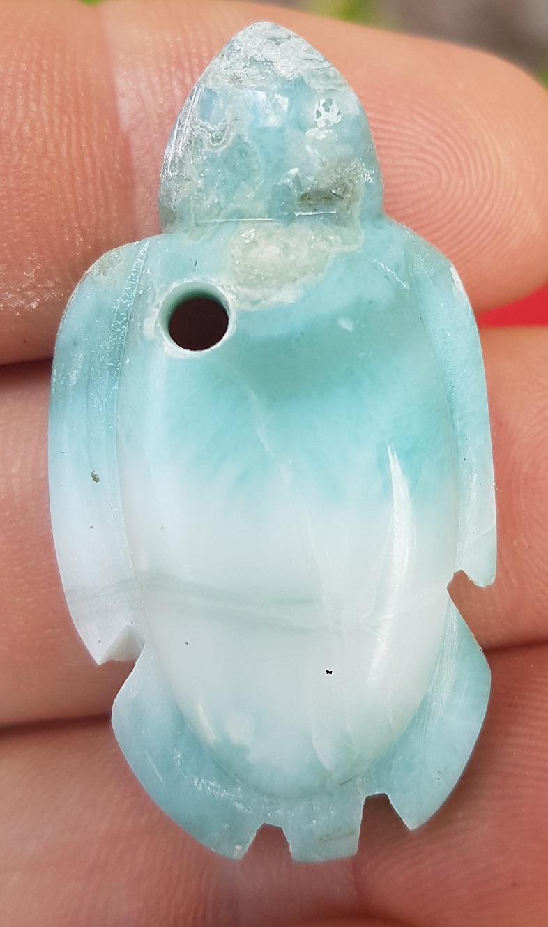 - ORIGINAL blue larimar handcarved TURTLE Gemstone pendant 15 grams jab-69