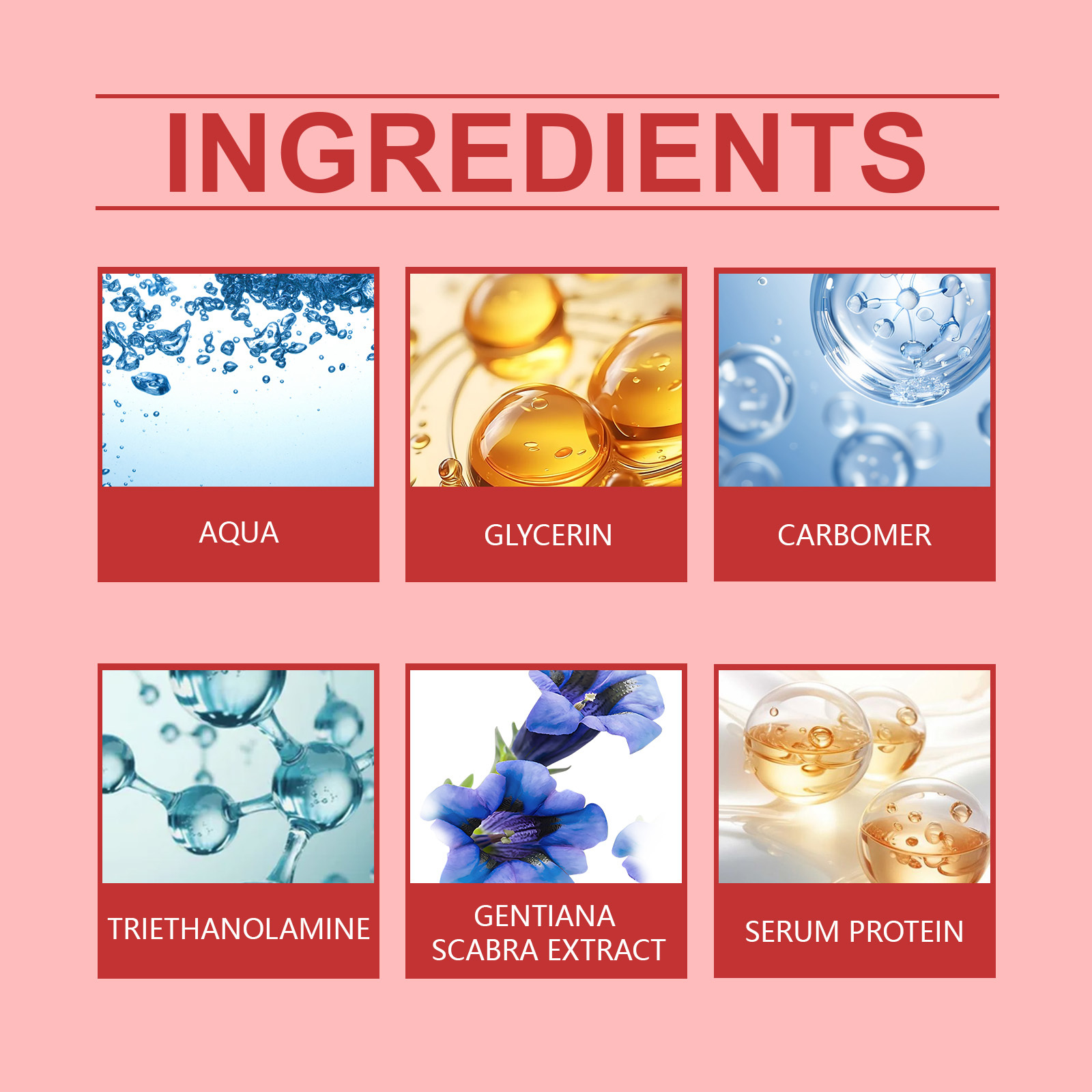 Our dragon Blood essence contains gentian extract and serum protein. It can significantly improve fine lines and wrinkles, rejuvenating the skin. Its usage method is very simple: Clean the facial skin, keep the skin dry, take an appropriate amount of essence, apply it evenly to the facial skin, and gently massage until it is fully absorbed. And it can enhance skin elasticity.
