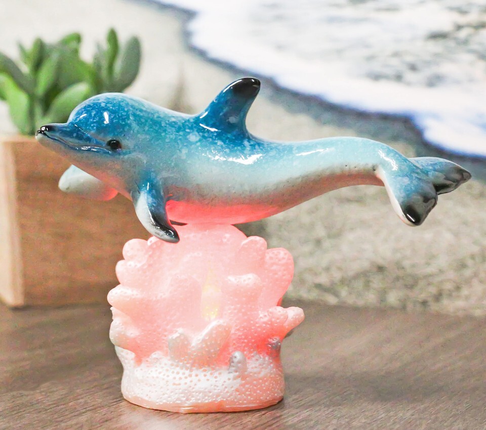 - Ocean Marine Sea Dolphin Swimming By Tropical Coral Reef LED Light Figurine