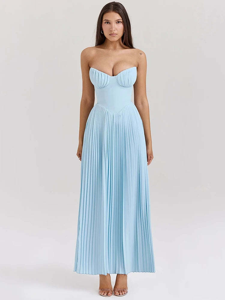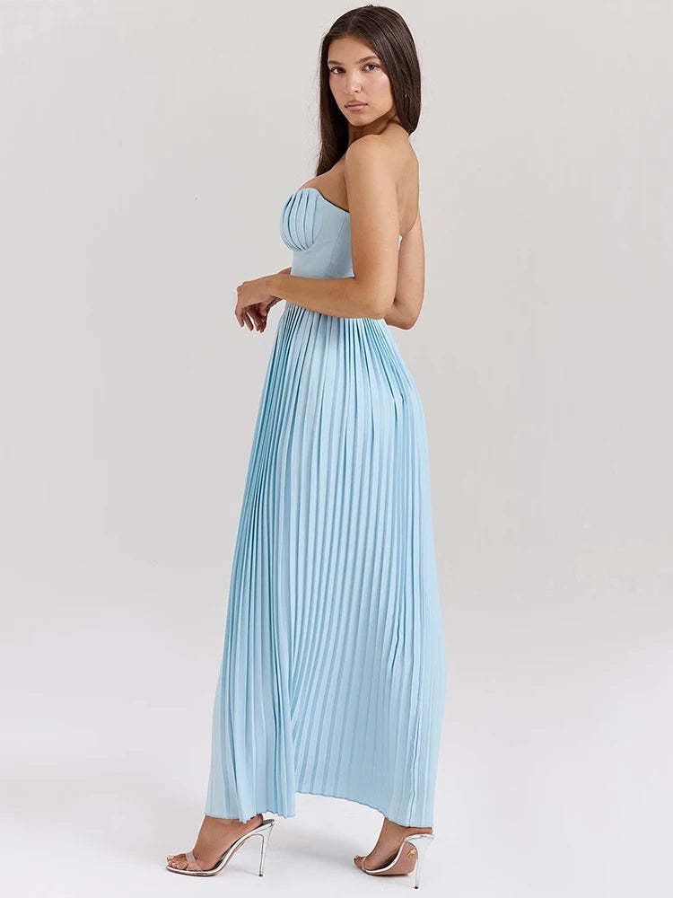 This dress boasts a slight stretch fabric and a strapless design, crafted from both polyester and spandex materials. The solid pattern and slim fit create a pleated, floor-length silhouette, featuring a slash neck and backless design. With a sensual and exclusive feel, this dress exudes luxury and sophistication. Created with natural fibers and intricate chest wrapping, it's a timeless piece perfect for the elegant and fashion-forward woman. Autumn 2024 marks the release date for this stunning dress, originating from Zhejiang, China.