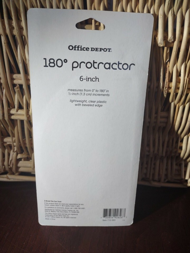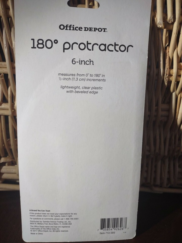Office Depot 180 Degree 6 Inch Protractor. Inventory box number 3224