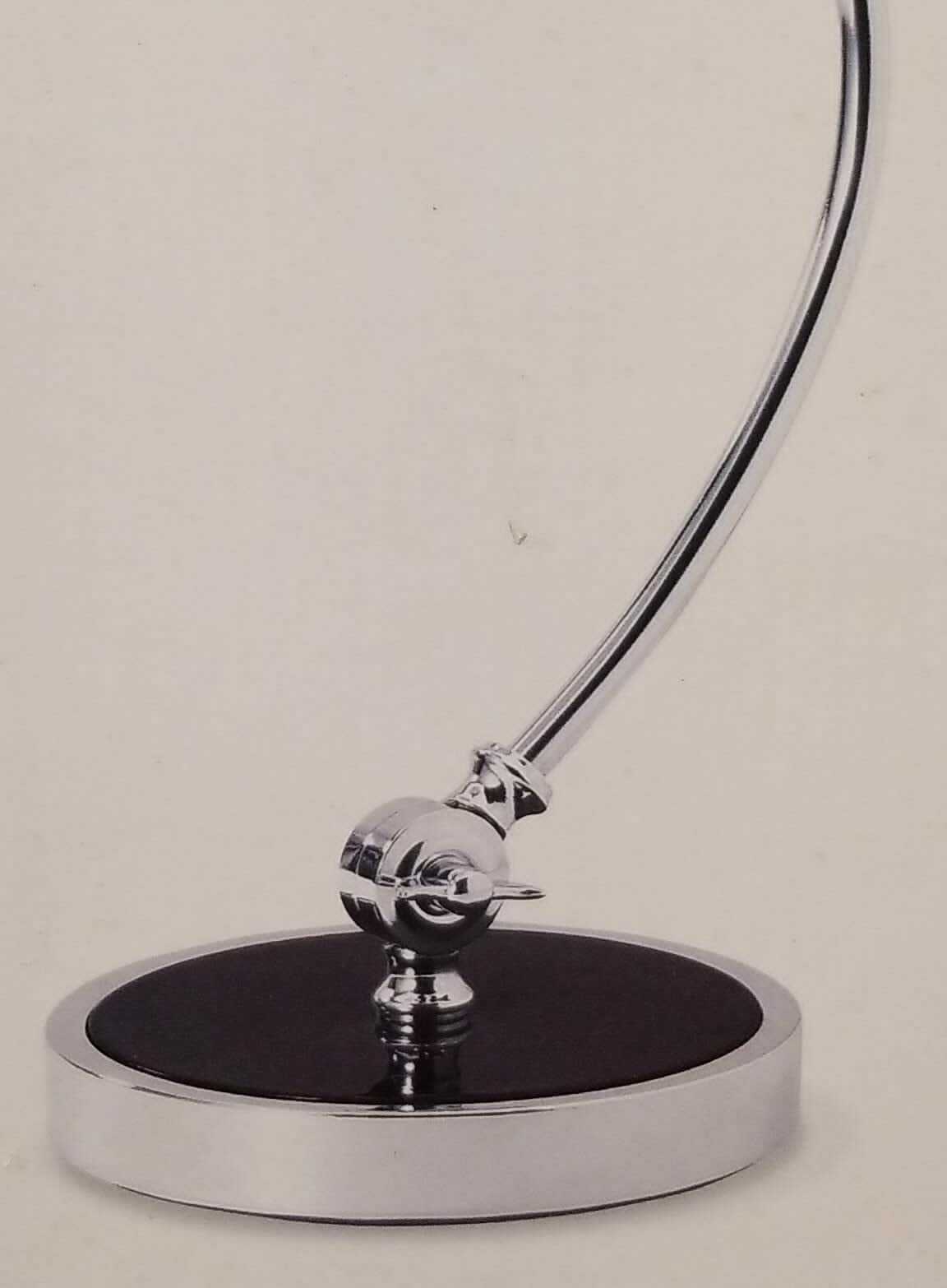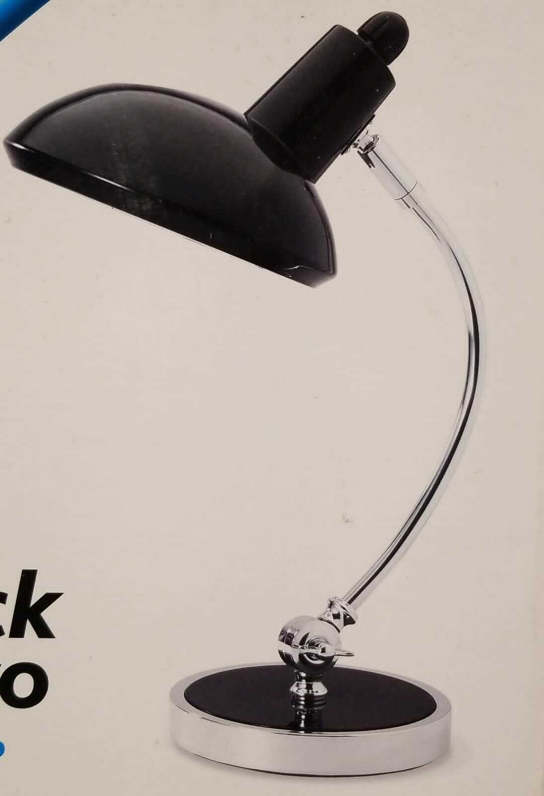 Step back in time as you light up your work surface with this cool retro-style desk lamp. It features all-metal construction for long-lasting durability, plus an adjustable arm and shade to help you direct the light precisely where you need it. The lamp is available in Glossy Red or Glossy Black (each sold separately) with slick chrome accents. Includes an on/off switch on the shade, a weighted base and a 60" power cord for more flexible placement. Uses a 40W incandescent bulb (sold separately). Backed by the manufacturer's 90-day limited warranty.
