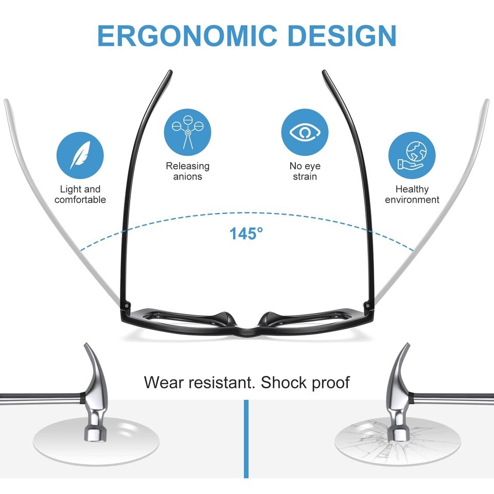 High Quality Materials Made of Optical Quality Lenses and Polycarbonate frame. Lightweight, Durable and Easy to Clean. Ergonomic one piece nose pad with Anti-slip design, It can to minimize pressure on the ears and bridge of the nose. And Eco-friendly materials without the annoyance of allergic reaction for human Skin, the anti-allergic flexible material makes you really enjoyable in any conditions