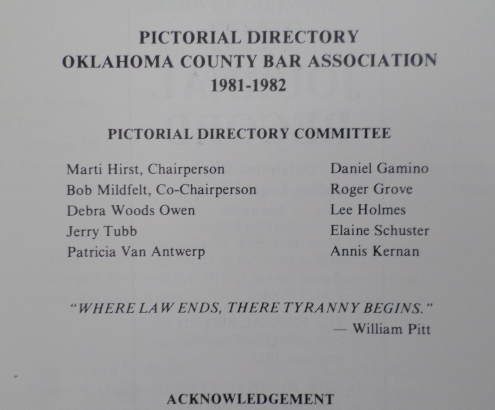 - Oklahoma County Bar Association 1981-82 Pictorial Directory