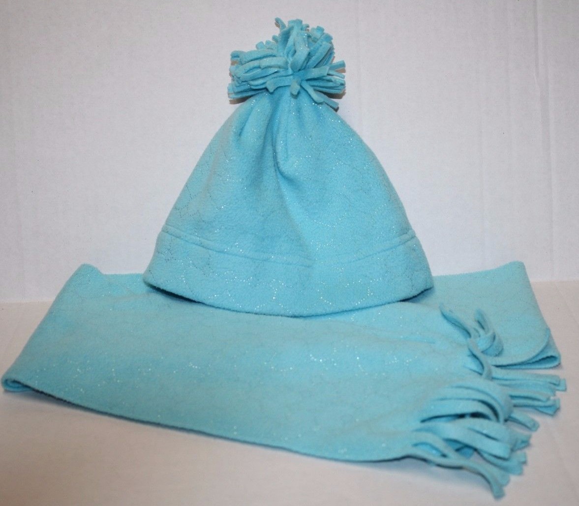 - Old Navy Girls L XL Winter Fleece Scarf Hat Cap Turquoise Blue Silver Sparkle