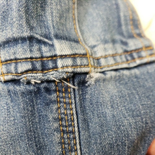 No stains, fray or tears. Light wear just below the right thigh pocket and the hems