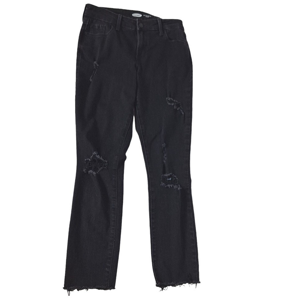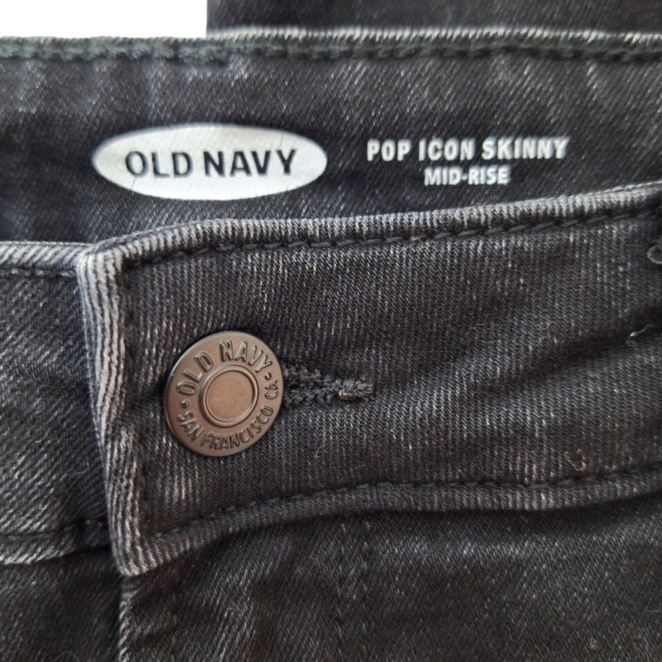 - Old Navy Pop Icon Skinny Mid Rise Jeans Size 4 Black Wash Distressed Raw Hem