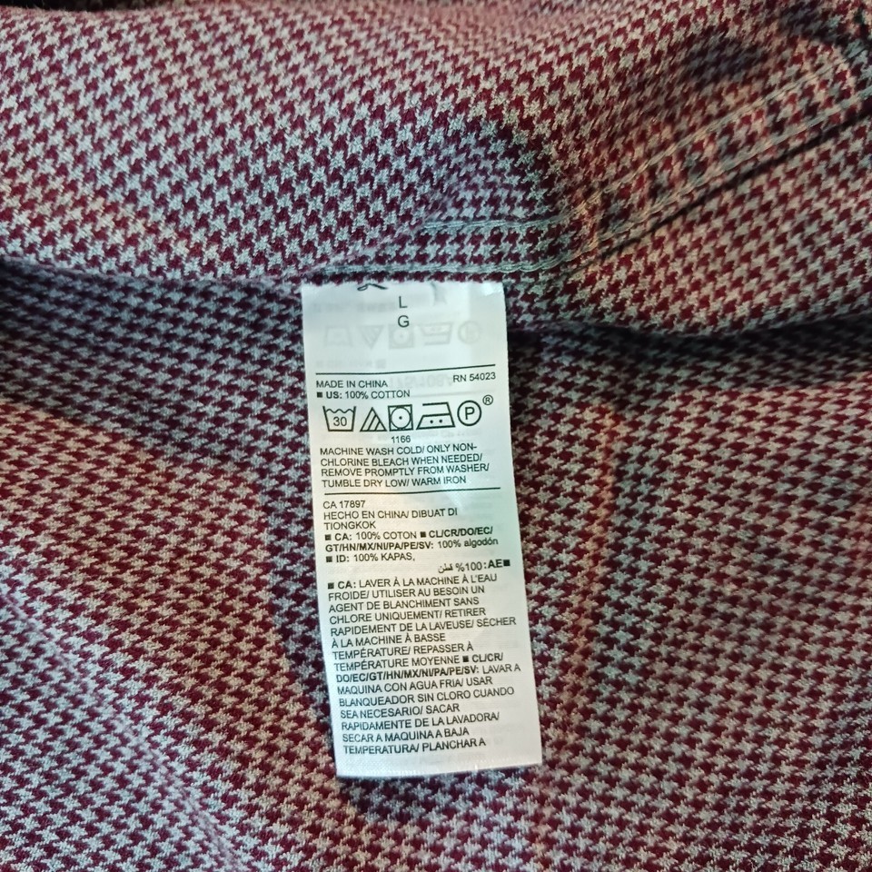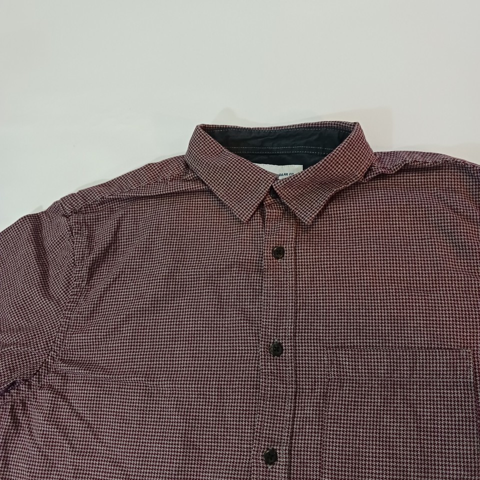 - Old Navy Regular Fit RN#54023 Men's Red & Gray Cotton Button Up Shirt Size L