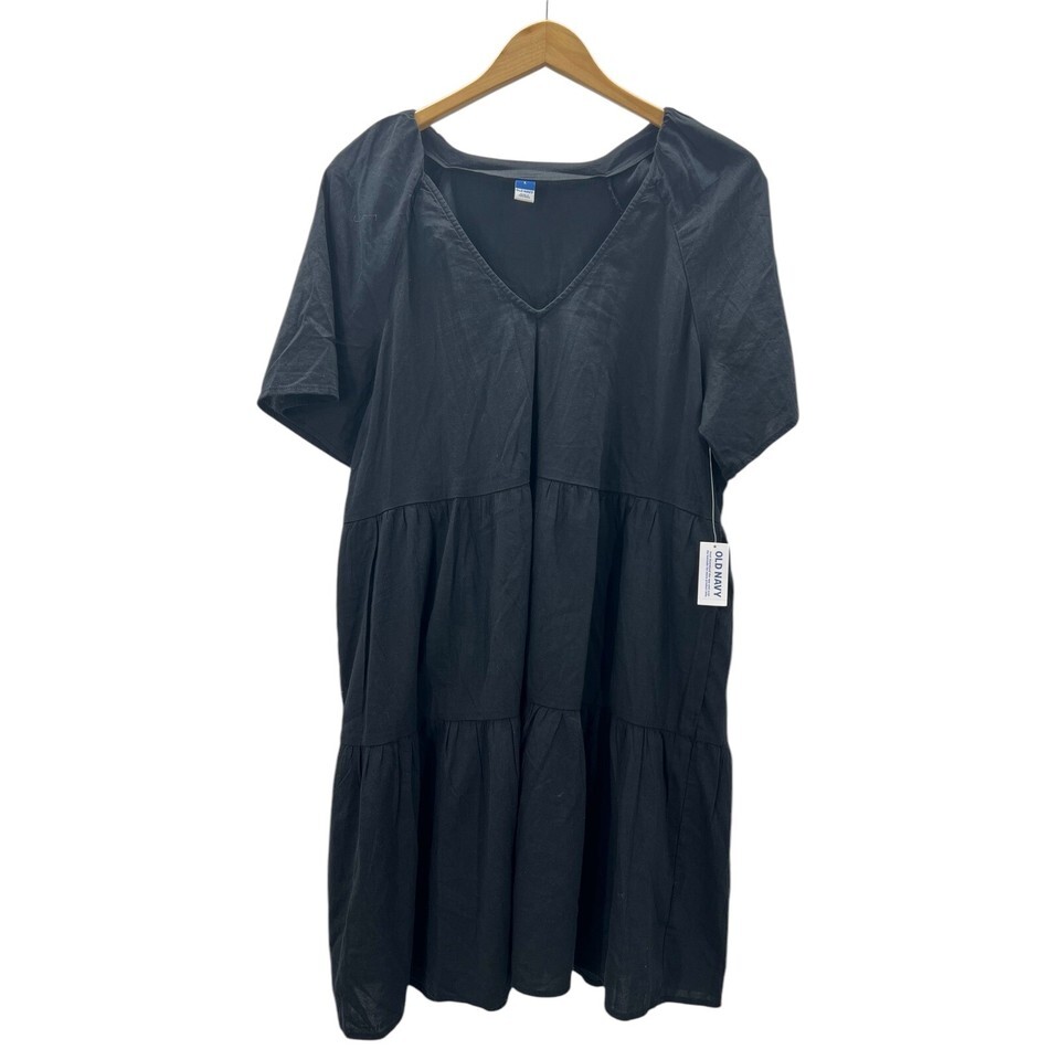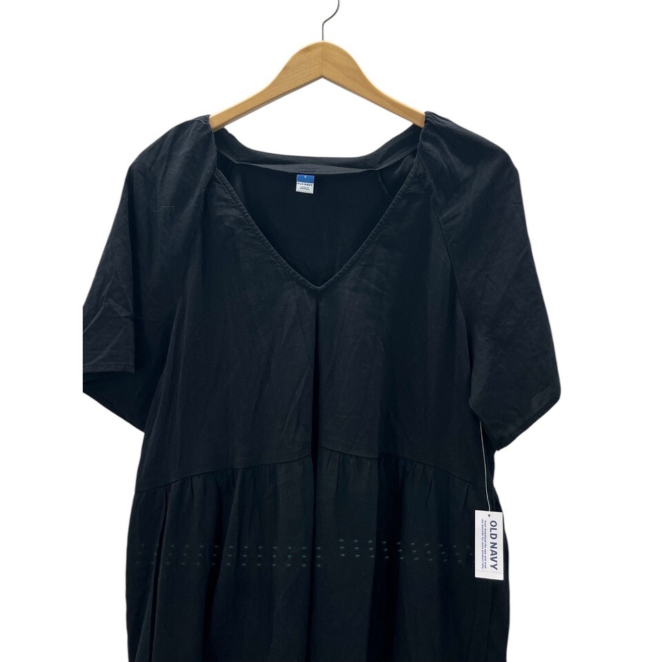 - Old Navy Tiered Mini Dress Casual V Neck Short Sleeve Black Size L