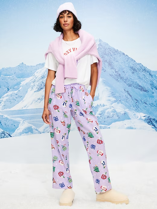 - Old Navy Women XL Flannel Pajama Pants Christmas Purple Mugs Winter Xmas MidRise