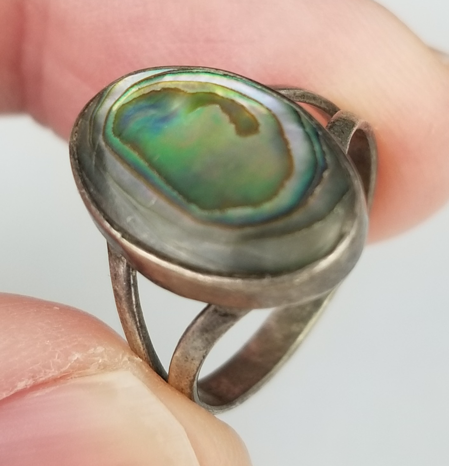 - old Taxco ring ESTATE SALE 925 size 6 women's ABALONE & STERLING SILVER