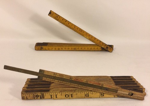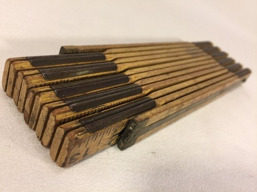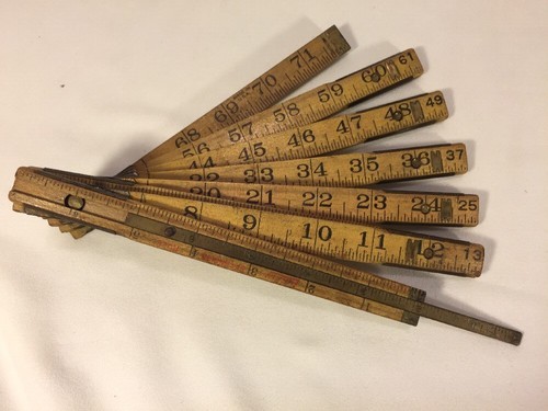 - Old Vintage Lufkin Folding Wood 72" Shop Rule With 6" Brass Extension USA +