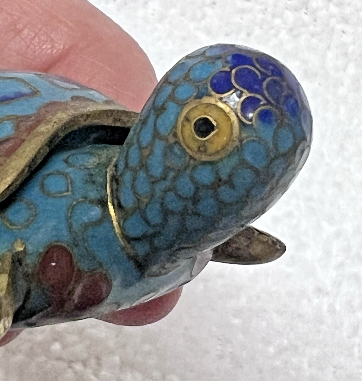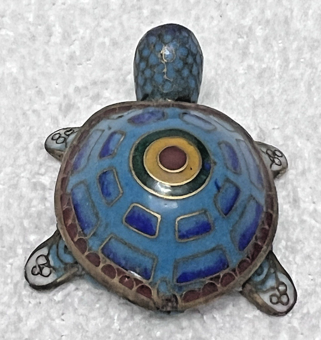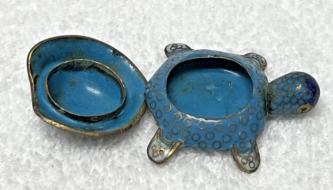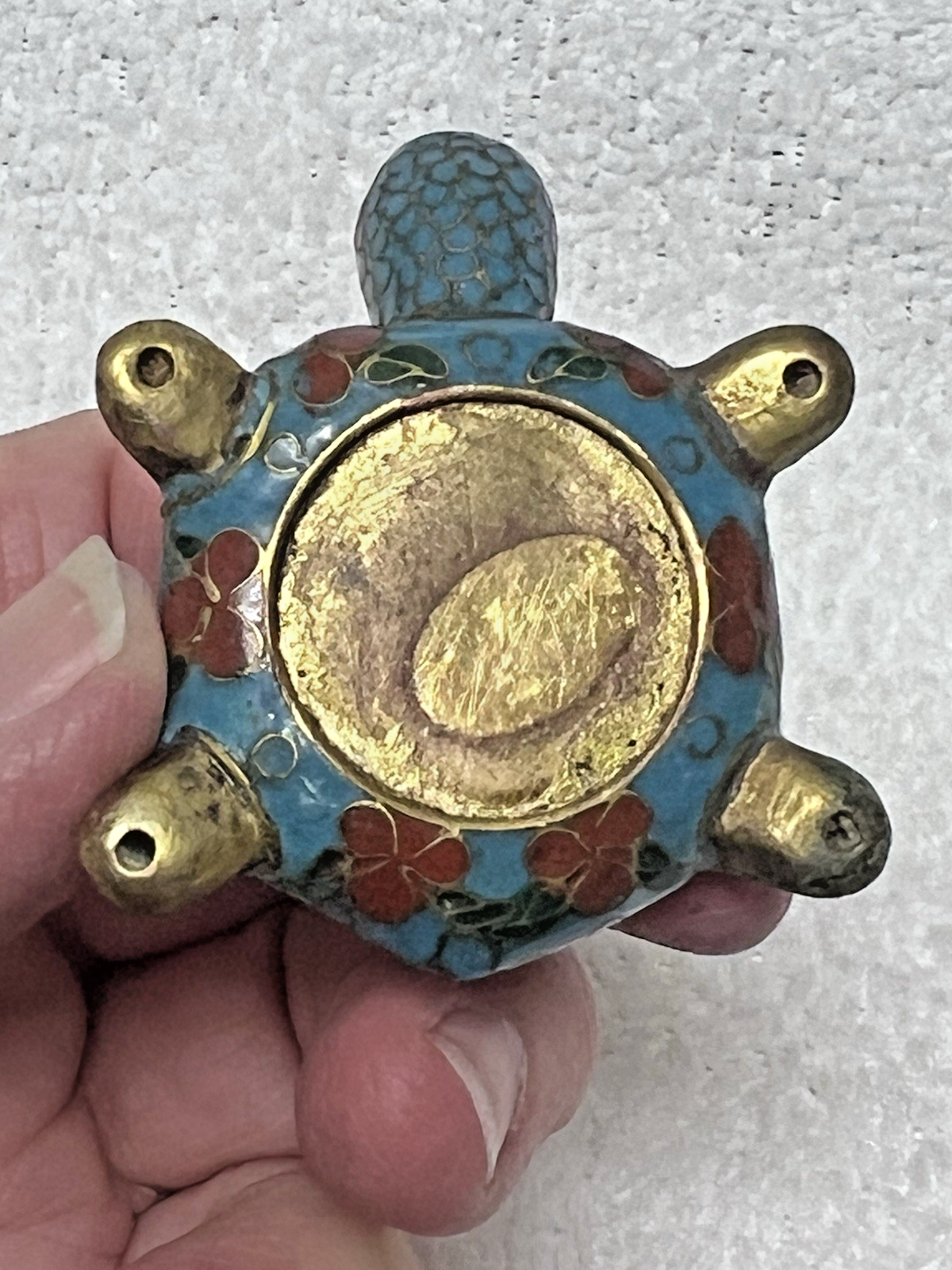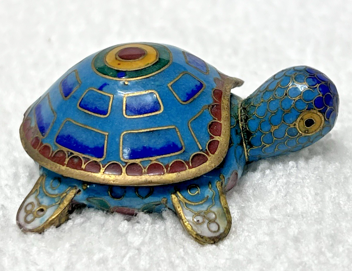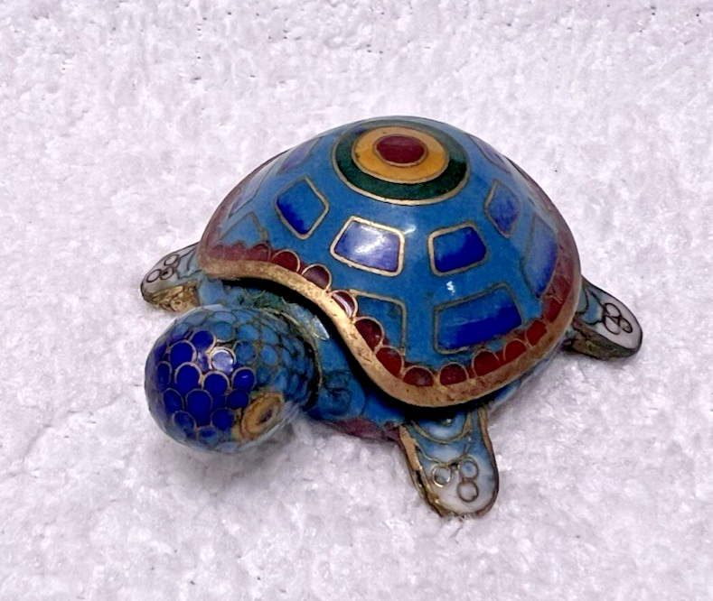 - Older Colorful Cloisonne Turtle Box w Fun Details 2 x 1 3/4 Pillbox Trinket