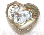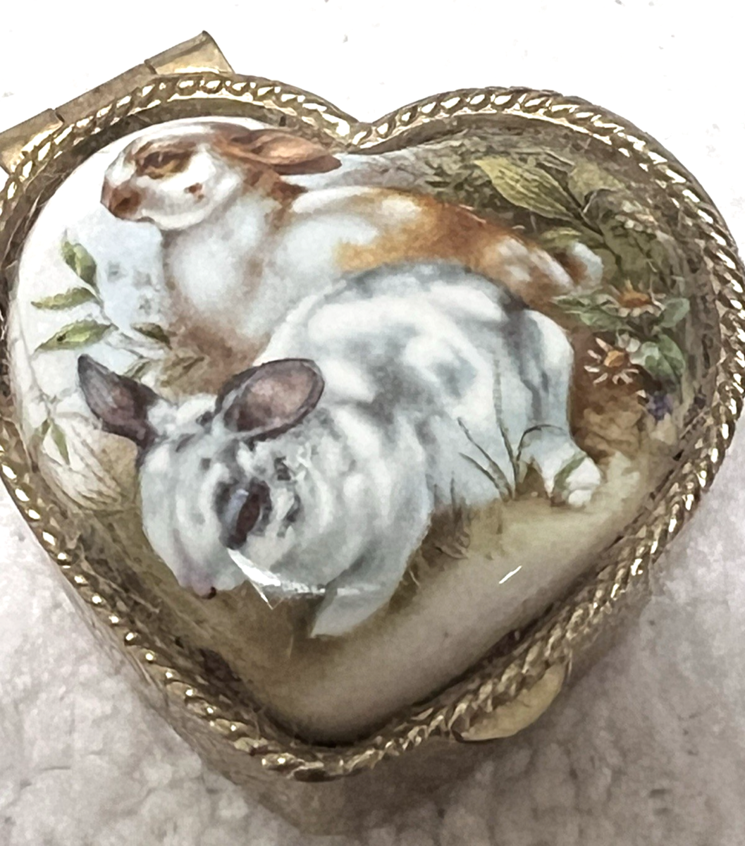 - Older Porcelain Topped Bunny Rabbit Heart SHP Pillbox Pill Box 1 1/4" Has Liner