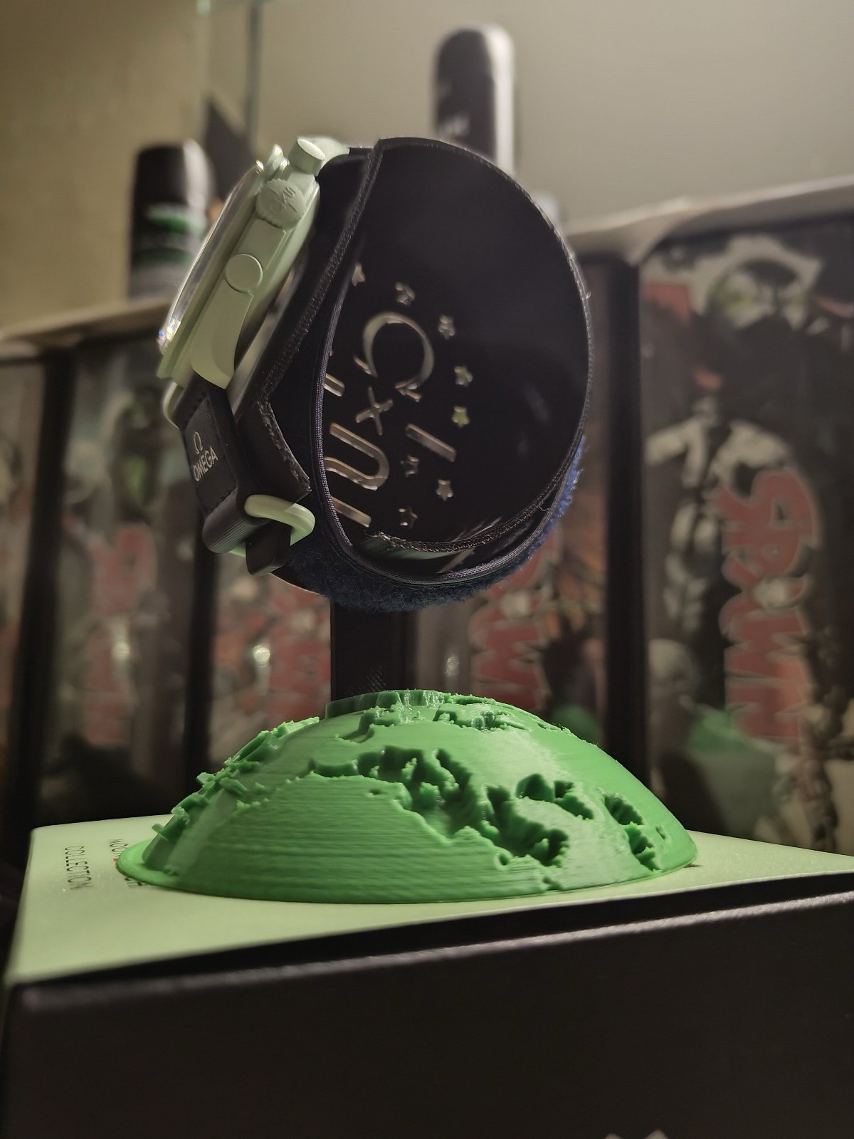 3D-printed display stand specially designed for the Omega x Swatch MoonSwatch Earth model.