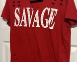 - On Fire Women's Short Sleeve Red Savage T Shirt Size Large,Pre Owned