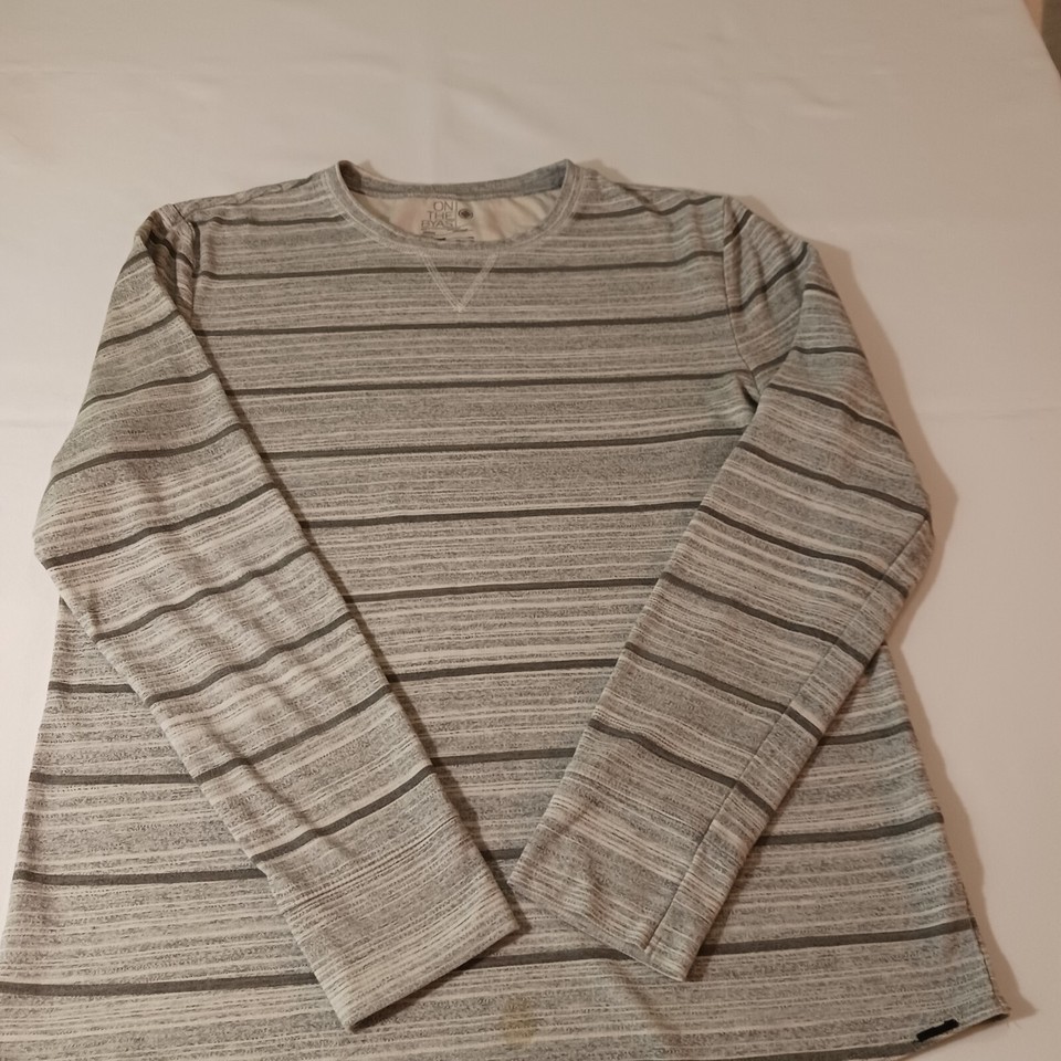 - On The Byas Men's Gray Cotton Blend Pullover Stripes Sweatshirt Long Sleeve Sz L