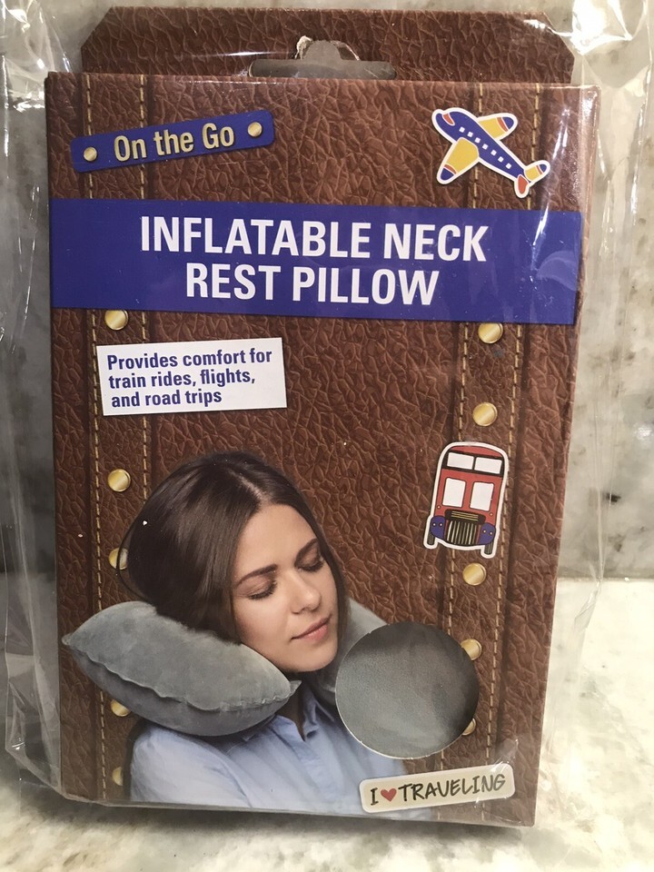 - On the Go Inflatable Neck Rest Pillow-Gray I Love ❤️ Traveling Provides Comfort