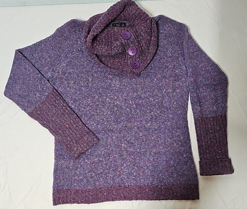 - One A Purple Tweed Color Block Cowl Neck Pullover Sweater Womens Size L