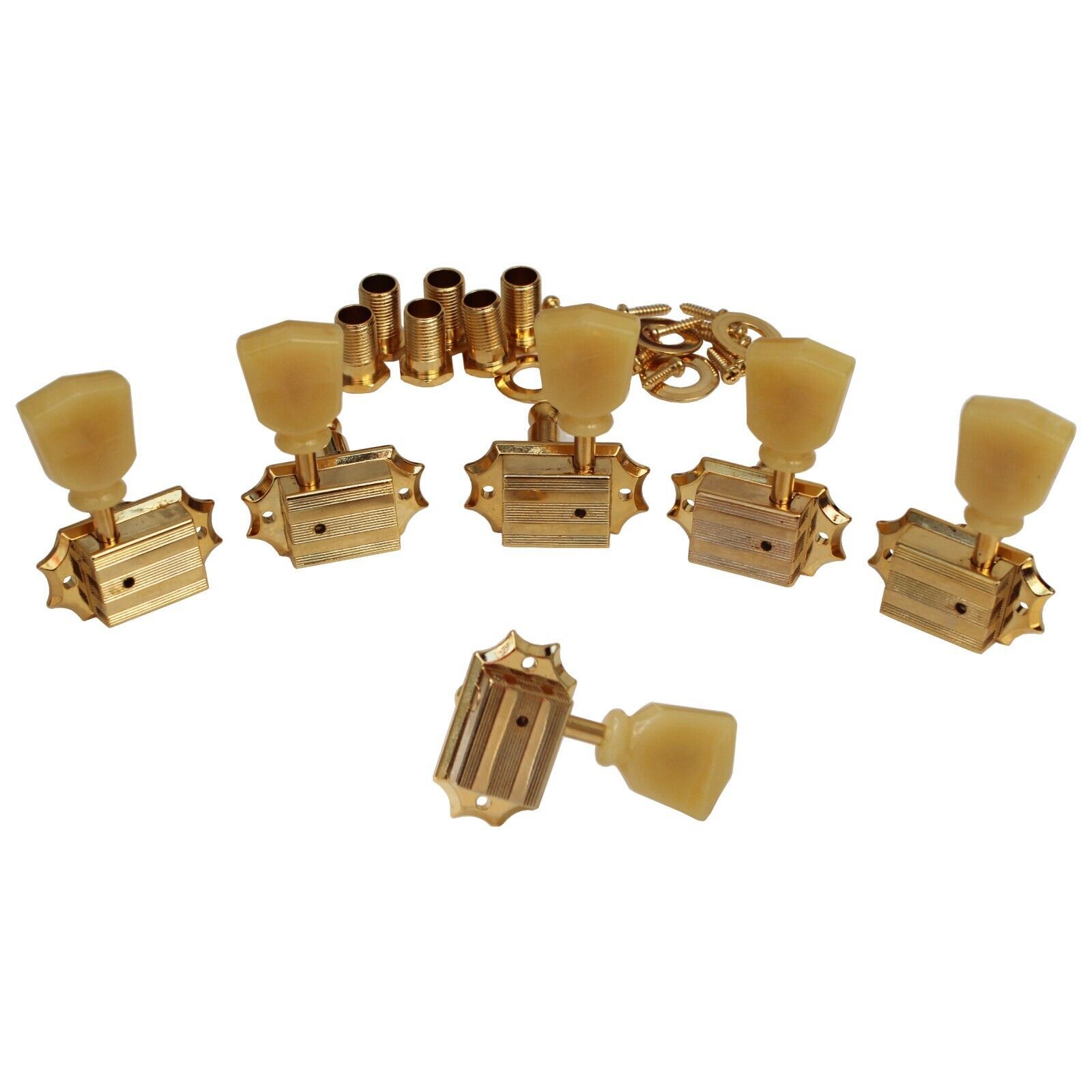 - One Set 3R+3L Vintage Deluxe Guitar Machine Heads Tuners Peg In Gold 14:1