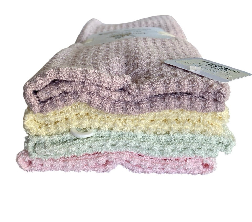 Mauve, yellow, mint, peach waffle has 4 towels.