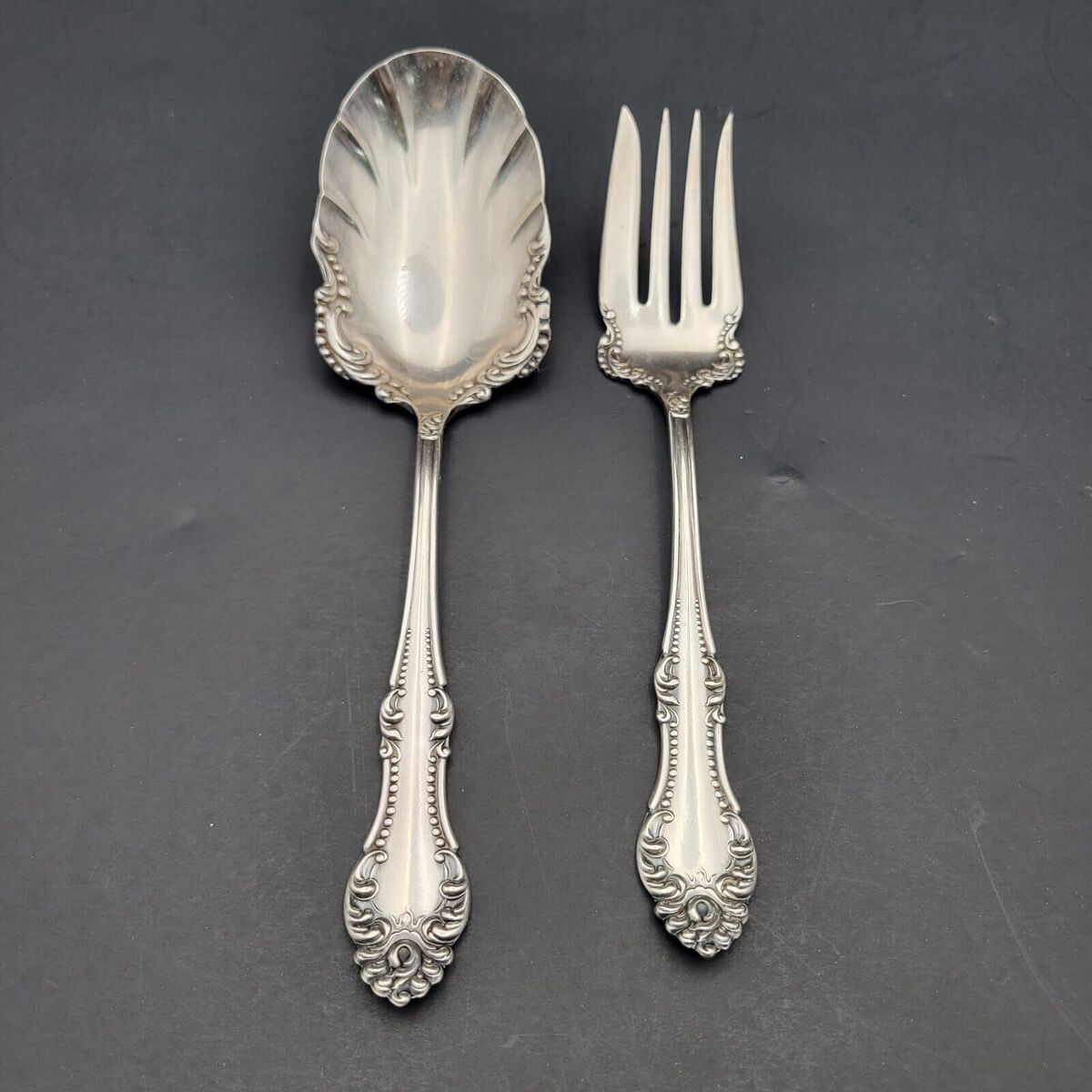Oneida CARLTON (1898) Rogers A1 Serving Set SILVER PLATE Spoon & Fork Rare VTG