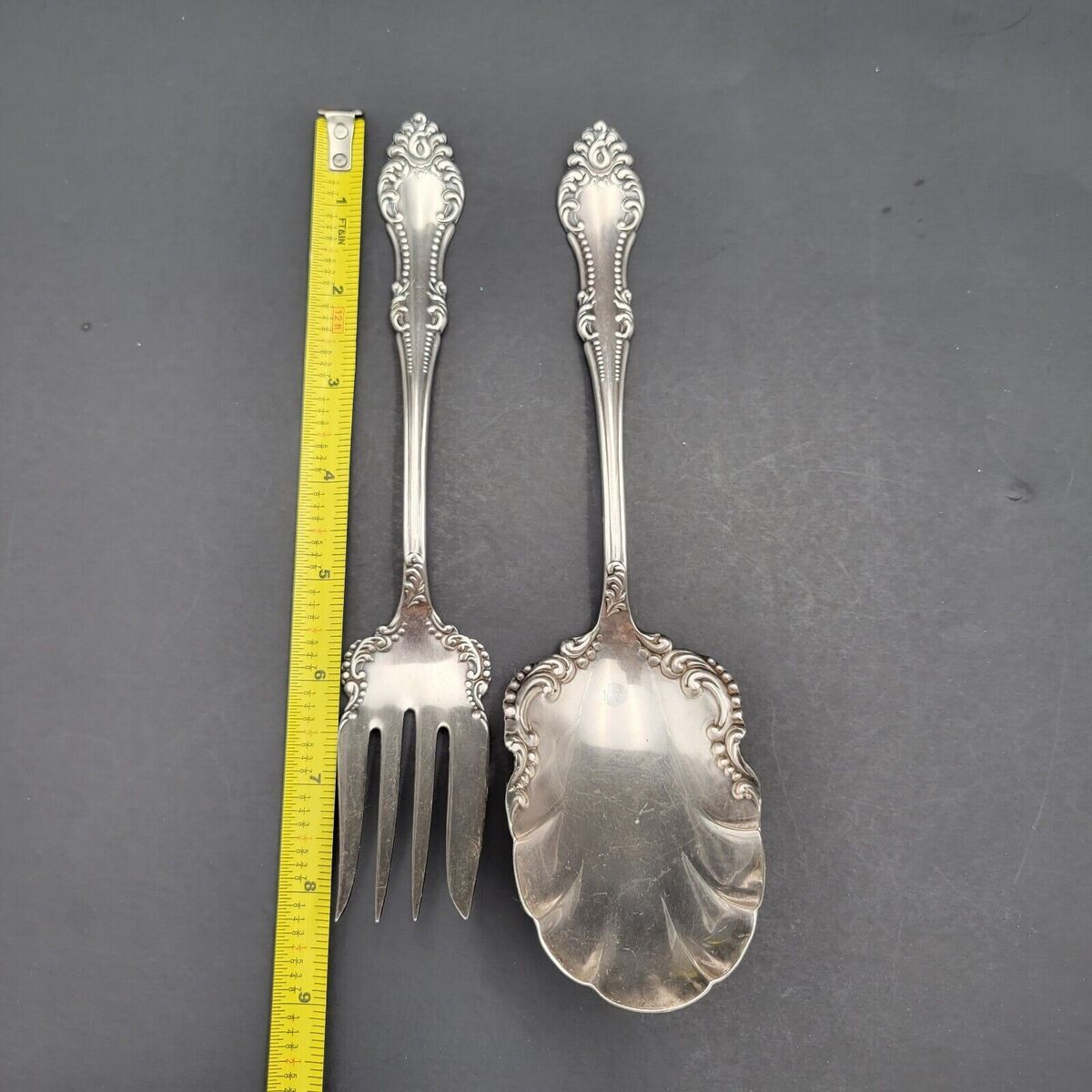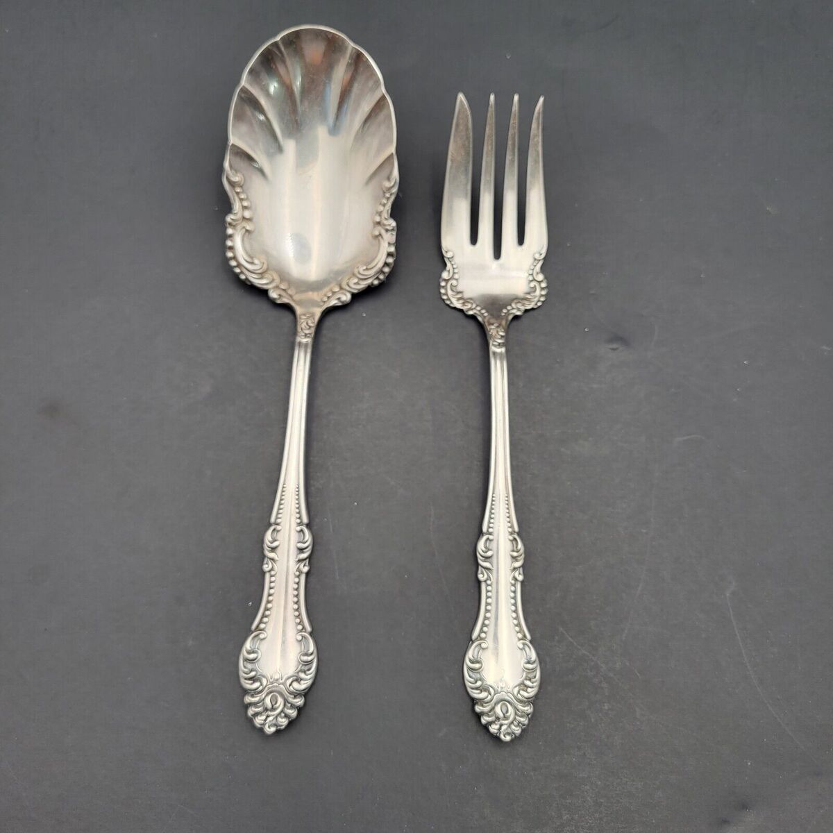 - Oneida CARLTON (1898) Rogers A1 Serving Set SILVER PLATE Spoon & Fork Rare VTG