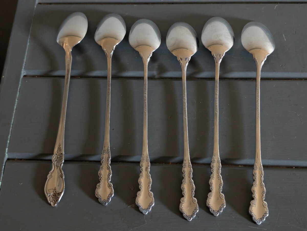 Oneida Cube Stainless SHELLEY Set of 6 Iced Tea Spoons USA Excellent Flatware 7.5"
