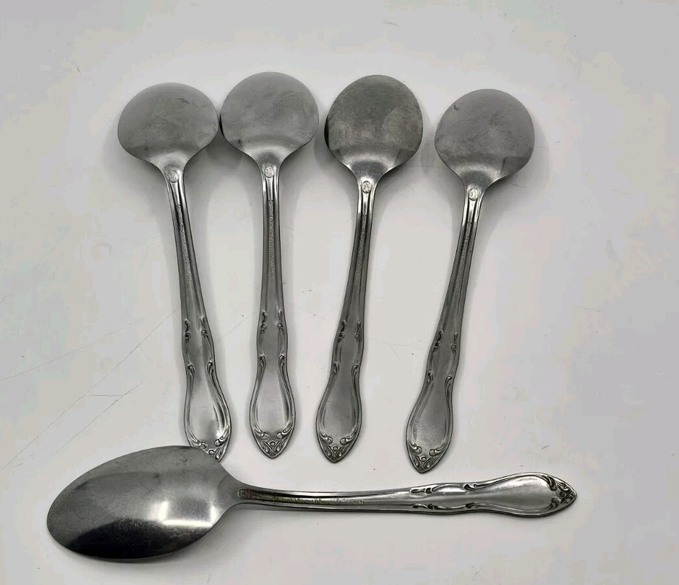 - Oneida HOMESTEAD (Stainless) Simeon L George H Rogers Set of 5 Oval Soup Spoons
